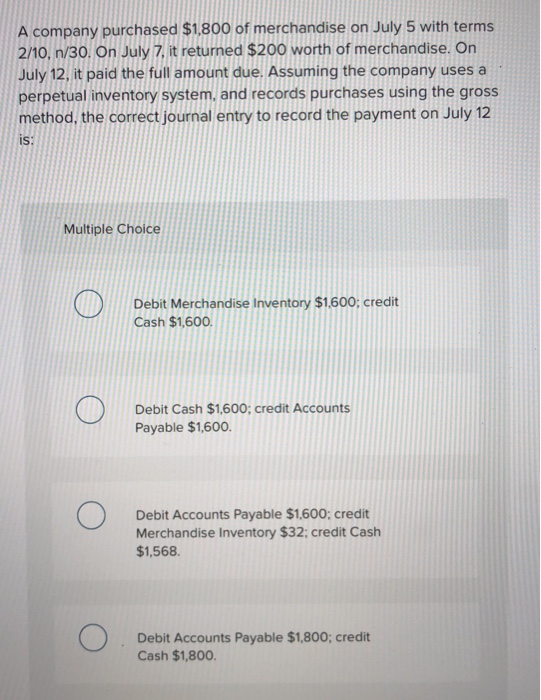 Solved: A Company Purchased $1.800 Of Merchandise On July ... from media.cheggcdn.com Belakangan jamak orang mempraktikkan metode memasak 5 30 7. Seperti kikil, krecek, babat, ceker ayam, daging ayam, kacang hijau, beras untuk ketupat, kacang, sagu mutiara. Ini adalah teknik memasak yang sangat efisien dalam menghemat biaya terutama kompor gas yang digunakan, kata chef de cuisine hotel indonesia kempinski, prasetyo widodo pada kompas.com, sabtu (25/7/2020). Selain itu, ceker ayam, daging ayam, kacang hijau, beras untuk lontong atau ketupat, sagu mutiara, ubi, singkong, sampai jengkol. Lihat juga resep ketupat bungkus plastik (metode 5.30.7) enak lainnya. Siapkan panci dan didihkan air secukupnya atau sesuaikan dengan banyaknya cangkang ketupat. Ini berlaku untuk semua masakan selain daging. Ketupat is a malay compressed rice cooked in coconut leave.